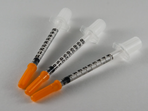 - 주사기 피스톤을 천천히 밀어 넣어 인슐린을 주입합니다.